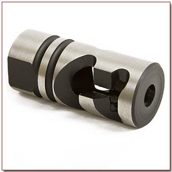 This version of the DNTC Compensator is for the shooter looking for the most unique design available. The compensator is machined out of solid stock stainless steel with an oversized outside diameter. The entire compensator is then blackened with an oxide process and then turned down on a lathe to remove the far outside surface leaving most of the compensator black with only the outside surface a brushed stainless steel surface. These parts are 100% American made.